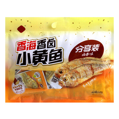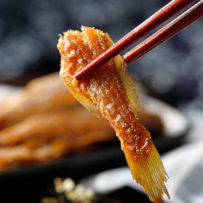 小鱼不大,约为人的大拇指长短,去头、去刺、去肠精心加工,卤得很入味,微甜微辣。真空包装,干净卫生。
