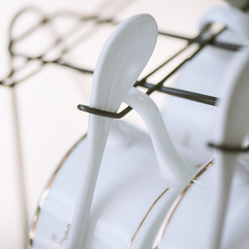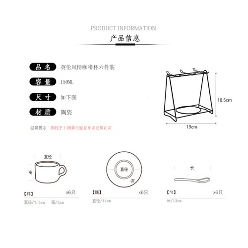 根据人体工程学合理设计人性化的杯柄,从而方便拿捏,搭配精致做工的小勺子,耐用更小巧,设计更为优雅大气。