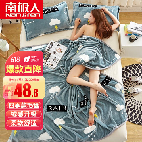 京东京造 加厚珊瑚绒羊羔绒毛毯