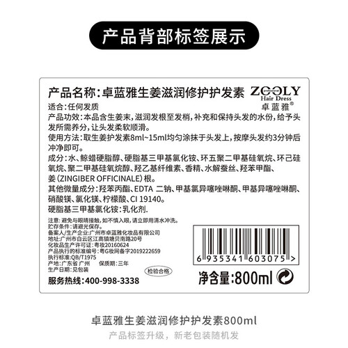 卓蓝雅 生姜无硅油 护发素