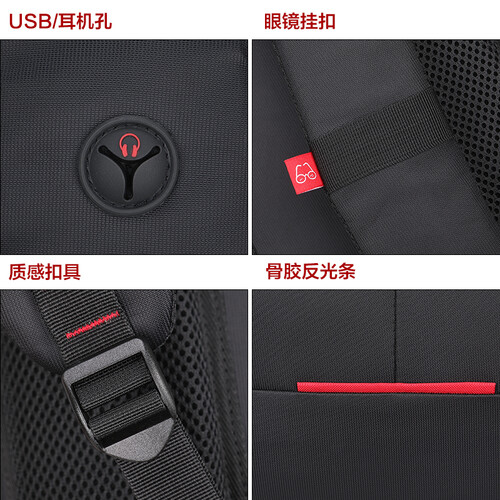 在耐磨防水双肩包身除添加松紧魔术贴设计,可将电脑牢牢包围在泡棉保护中避免磕碰损坏。侧身还有耳机孔设计,方便听歌更人性化。