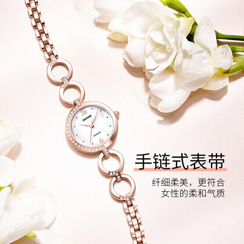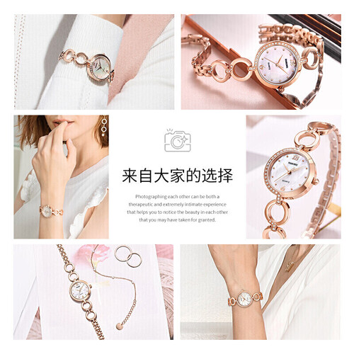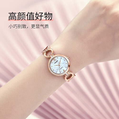 手表采用了耐冲击构造的坚固表壳,抗摔又防震,并且手表自身设计更偏向手链,充分满足了女生爱美所需。