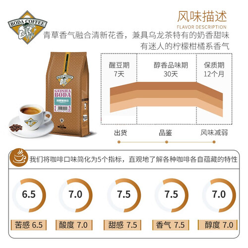 博达 生豆新鲜烘焙纯黑咖啡