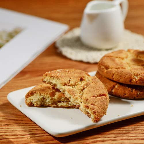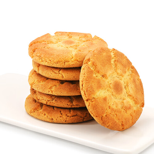 这款中华老字号桃酥是借鉴中式传统工艺制作的,桃酥色泽金黄诱人,片大,吃起来香酥美味,浓香四溢,早上搭配牛奶吃很不错!