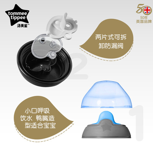 采用两片式可拆卸的易握手柄,适合宝宝小手的抓握。柔软而温和的杯嘴,不会对宝贝娇嫩的牙床造成伤害,使用更放心。