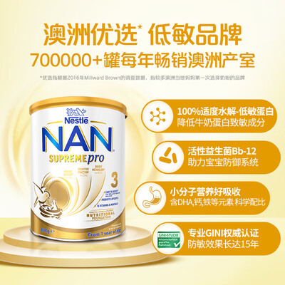 雀巢超级能恩 澳洲金罐装,通过GINI临床认证,有效预防过敏。独有蛋白优化&适度水解工艺,小分子蛋白好吸收,澳洲医生力荐