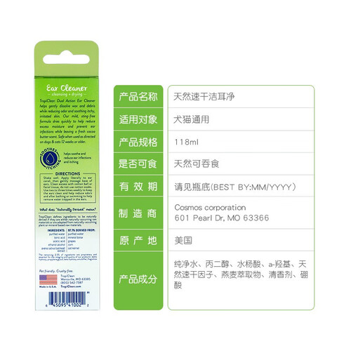 采用天然快干的工艺,使用过程避免水分残留,有效治疗。萃取有玉米与小麦精华,植物配方进行深度清洁,减少耳道中的油脂。