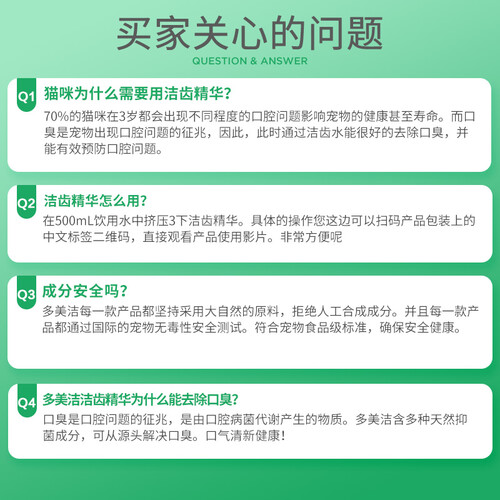 美国原装进口,品质得以保障,且无需刷牙即可洁净,减少爱宠抗拒心理。天然清新口气,改善异味护龈健齿,呵护口腔健康。