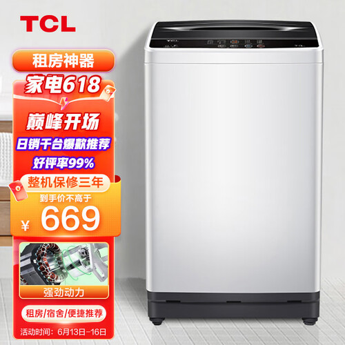 这是一款来自TCL的波轮洗衣机,它拥有7公斤大容量,即使是二胎的家庭,也能一次清洗全家人的衣物。