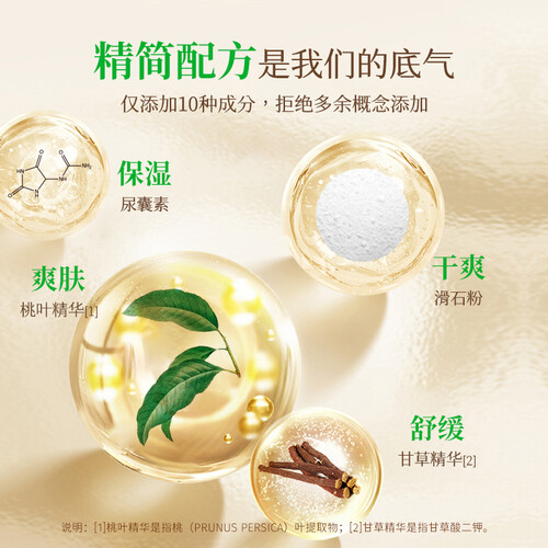 鲜桃叶精华与芦荟精华配合,有效保湿,呵护婴儿肌肤。延展性能好,易于涂抹,适用于面部与身体。水状液体,使用方便,涂抹均匀。