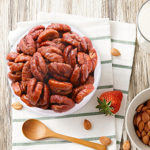 原香味临安山核桃仁,慢火烘焙减少风味流失,每一口都耐人回味。色泽均匀油亮,纵享味蕾盛宴,贴合多数人的口味偏好。