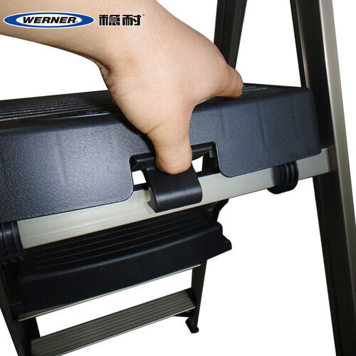 为了让你放心的自行换灯泡,这一款人字梯升级超宽超大的防滑平台,轻松容纳下双脚站立,踩踏舒适,安全性更高。