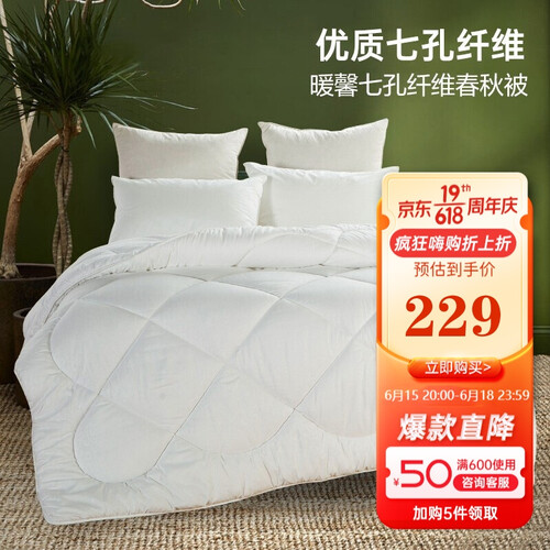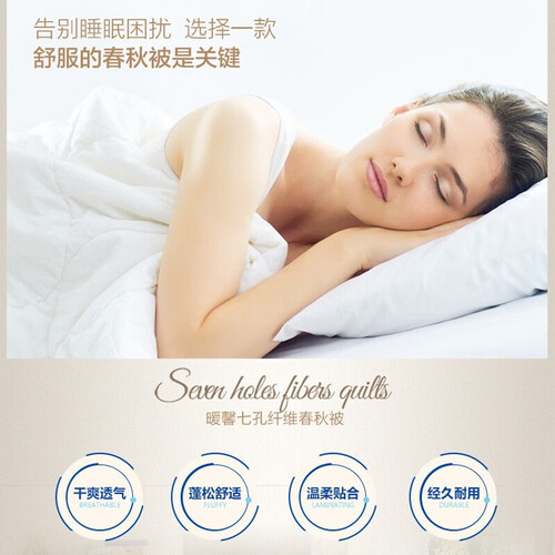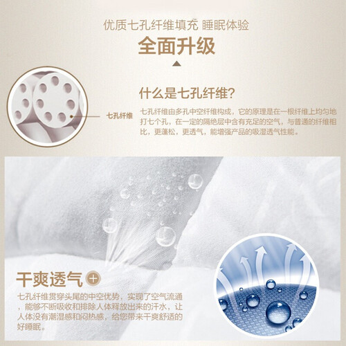 气孔结构纤维填充的被芯,空气流通性佳,可不断吸收和排除人体释放的汗水和热气,告别潮湿闷热感,睡眠干爽更舒适。