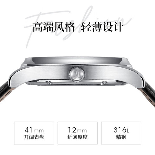 黑色牛皮表带设计,经典大气,耐看易打理,久戴不易变形。打造简约黑色表盘设计,简约干练,彰显男士儒雅气质。