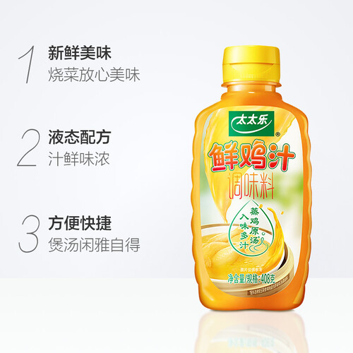 蒸鸡原汤制作,使美食更加咸鲜美味;瓶装设计方便倒取,不易浪费