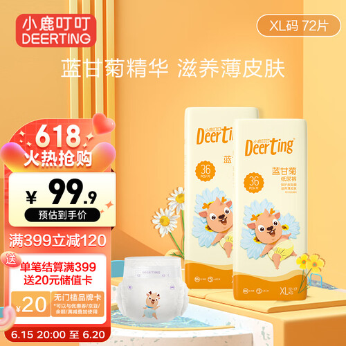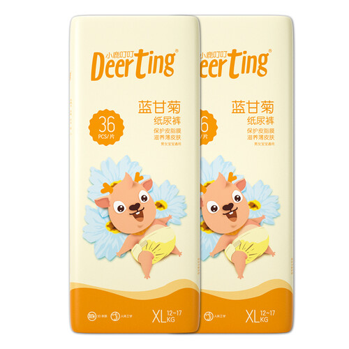 小鹿叮叮纸尿裤含有稀有珍贵的蓝甘菊植物成分,细心呵护敏感肌肤,符合人体工学设计的立体裁剪,温柔贴合,轻柔包裹宝宝腰腹。