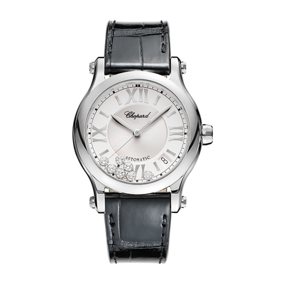 手缝鳄鱼皮表带,精密做工,长时间佩戴舒适度持久,自动上链机械式机芯,表盘内部镶嵌水晶,时尚非凡。