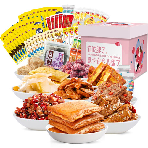 19款美食|这款大礼包内含19款共计76包零食,香辣酸甜各种口味齐全,不仅有荤有素,还有坚果、果脯等丰富品类可以挑选,轻松应对一家人多样化口味需求。