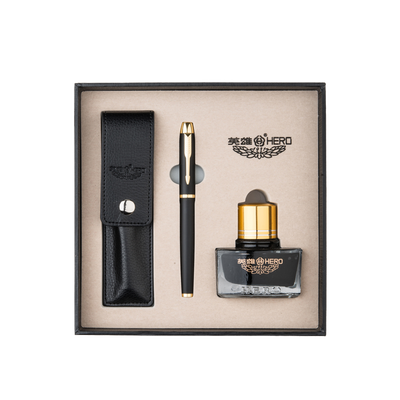 笔墨套装中包含一支铱金钢笔、一瓶钢笔墨水、一个随身笔袋,价位合理,适用于商务、办公场合。