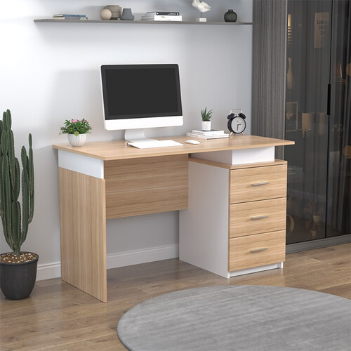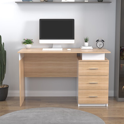 标准的办公桌高度和宽度,大气沉稳,高颜值。右面柜子把手选用磨砂亮银色的金属,手感舒适。配备静音滑轨,展现出色的耐磨性能。