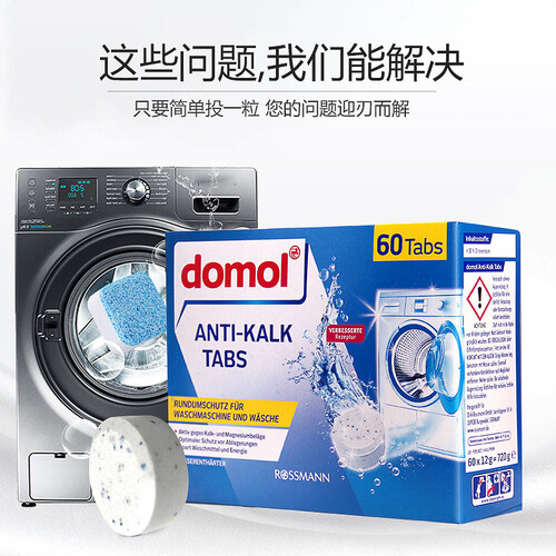 Domol洗衣机去垢泡腾片不仅可以软化水质,除去水垢,还可以保护衣物颜色,缩短洗涤时间,还能保护洗衣机使用寿命。