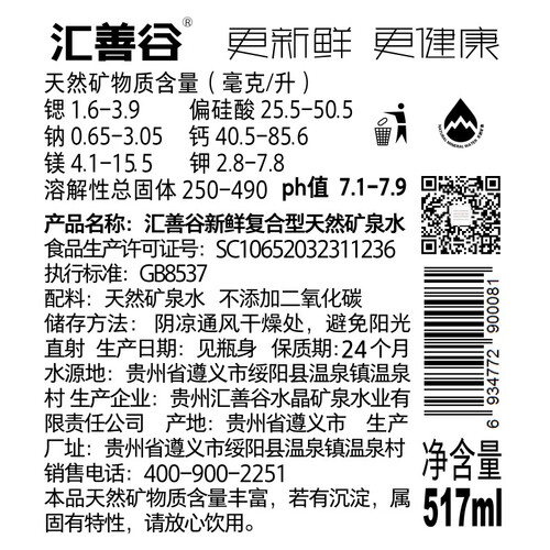 汇善谷 水质清透高活力矿泉水