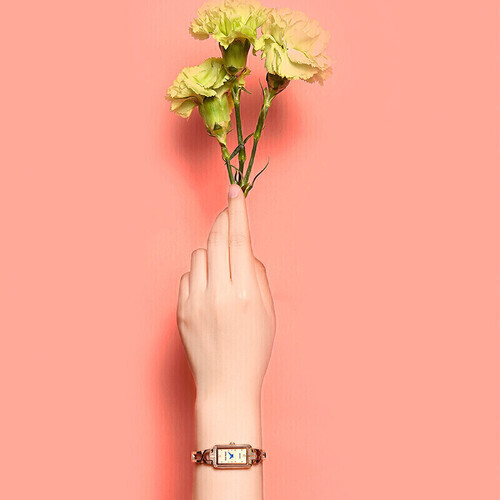 表镜采用人工合成蓝宝石玻璃,具有一定的硬度,能够有效抵御外部的碰撞冲击。独特方形表盘,赋予优雅气场。珠宝扣设计摘戴便捷。