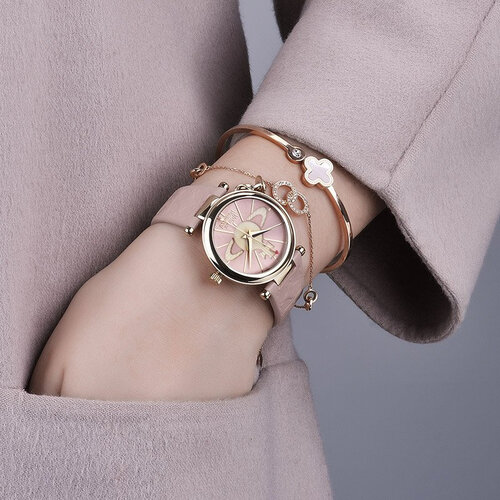圆形表盘设计将柔美的女性魅力展现出来,展现优雅的都市格调。加持粉色选色,将阳光折射光度,变成梦幻般的颜色停留在腕间。