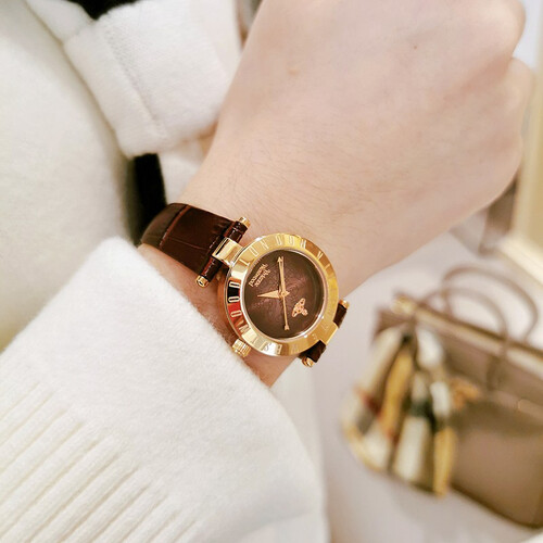 经典指针设计,表圈上的logo镌刻,显得更加动感和优雅。搭配优质真皮表带,手工精制,亲肤柔软,佩戴贴合手腕。