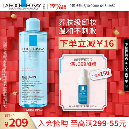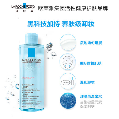 清洁舒缓|蕴含理肤泉温泉水,舒缓肌肤泛红并补充肌肤水分,温和有效清洁去除面部彩妆及污垢,减少肌肤摩擦,入眼不刺激,洁净养护肌肤 。