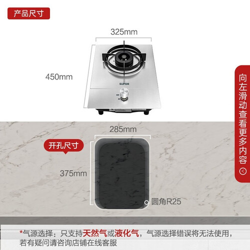 小巧单孔灶台,一人食更轻松。臻选0.7mm不锈钢材质,精致美观易于打理。升级圆形按钮,手感舒适快速点火。