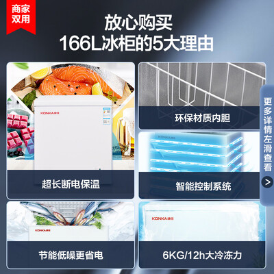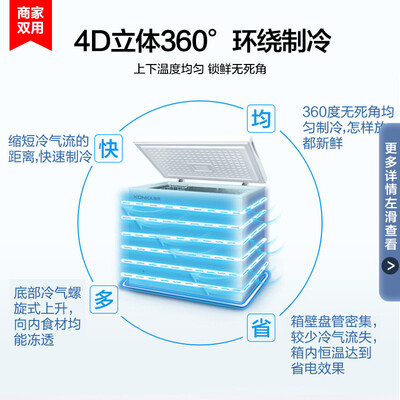 冷柜四周盘管密集,拒绝上下温度不均,底部冷气螺旋式上升,向内食材都可冻透,同时减少冷量流失,达到省电的效果。