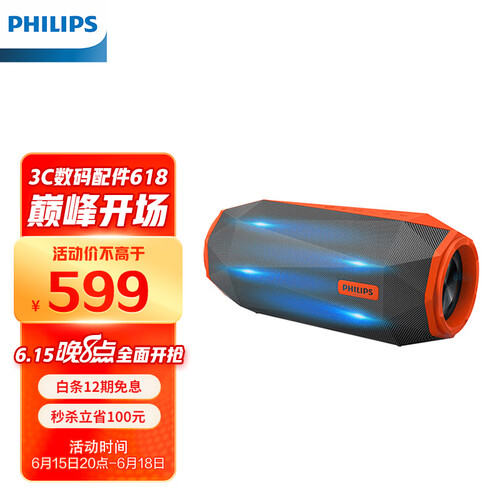 LED脉冲炫酷灯光,动感十足的灯光效果随音乐节拍而律动,轻松燃爆全场。菱形几何切割外观设计,使机身更显时尚简洁。