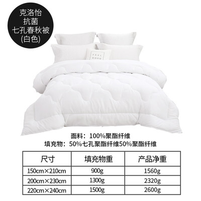 采用结构科学的七孔纤维填充,回弹性好,纤维的抱合力强,手感柔软,经久耐用。抗菌面料经过了磨毛工艺的处理,触感细腻舒适。