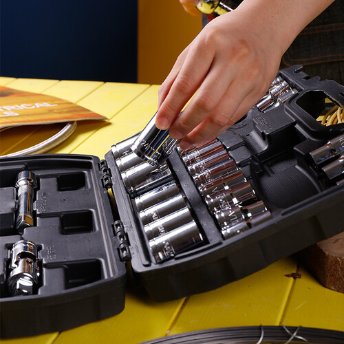 有32件工具,种类齐全,多种多样,维修的时候十分方便。具有合理的卡位,各种工具摆放稳固,不会脱落出来。