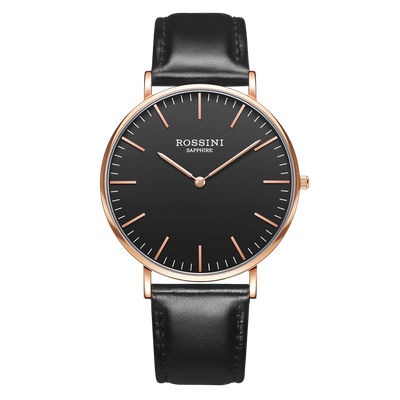 简约美学 | 整表采用简约美学的设计风格进行打造,尊贵的黑金色搭配凸显个人的精英气质,表盘无秒针的独特设置有效提升了视觉上的一体化,减少错看时间的风险。