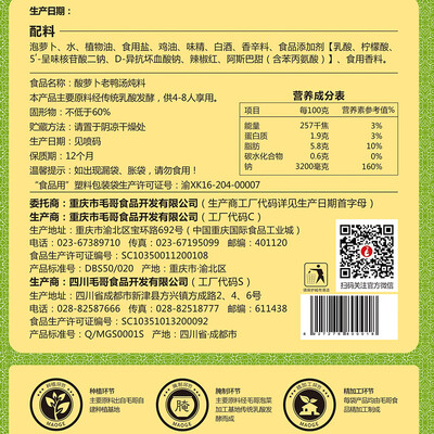 甄选优质萝卜,经老坛陈泡八个月,采用现代工艺搭配其他调味料共同熬制。用来搭配鸭肉小火慢炖,入口酸香绵长,令人回味无穷。