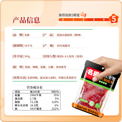 好吃不上火,适合口感清淡人群,整颗小辣椒,花椒,茴香,香叶,白蔻等等,油而不腻,色红味足,越煮越香。