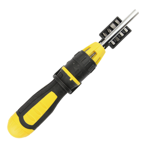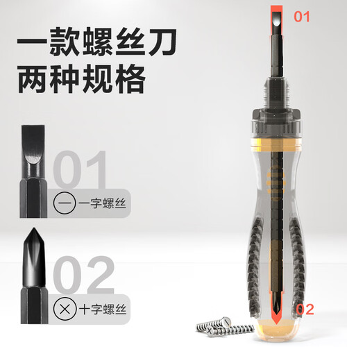 两头可用的螺丝批,杆的两头分别是十字头和一字头,可以根据需要拆卸安装的螺丝纹来选择十字头或者一字头,减少了多工具的麻烦。
