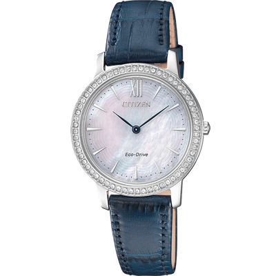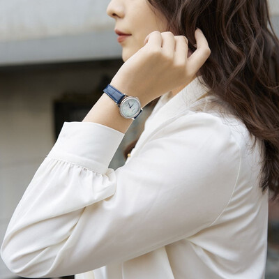 天然贝母表盘纹理细腻,色彩明艳动人,搭配极简表针,表盘层次饱满丰富。皮革表带收边针角密实平整,触感亲肤细腻,佩戴更舒适。