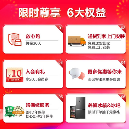 内部采用独立式的分储空间设计,避免食物串味,新鲜健康。配有可调脚垫,上下高度轻松易调,稳定性好,更牢固。