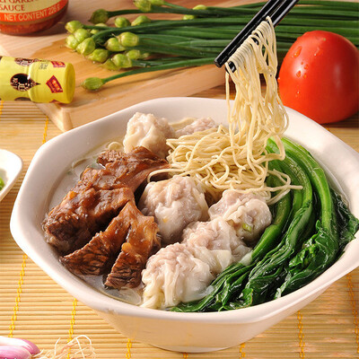 地道港式风味的云吞面,面条质地爽滑有韧劲,可用来烹制云吞汤面、葱油拌面和鸡蛋炒面等各式美食,花样烹饪方法美味不单调。