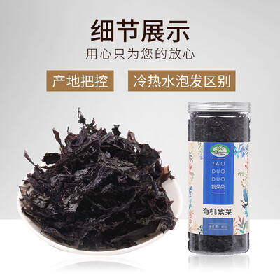 姚朵朵紫菜从采摘到加工间隔时间短,保证食材新鲜,采用现代化机械烘干,干爽体轻有光泽,纹理清晰,易保存。