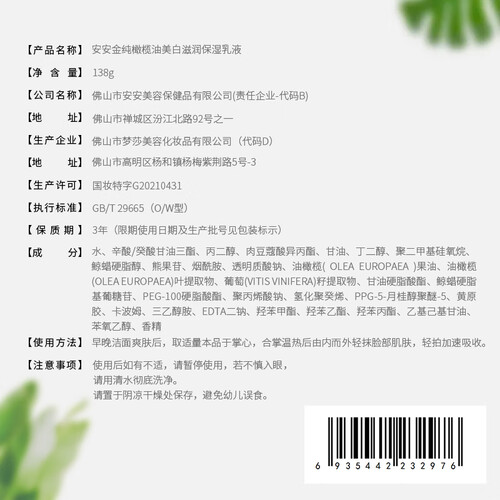 萃取橄榄精华,能够拯救皮肤暗黄暗沉等问题,让你的肌肤更加柔嫩光洁。富含维生素E成分,保持肌肤的弹性,温和不刺激。