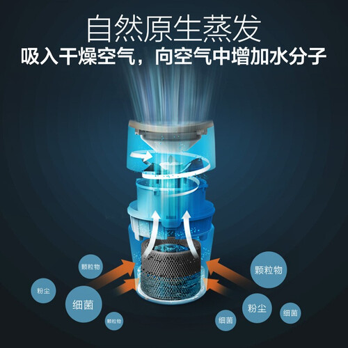 原发蒸汽技术,有效吸附干燥空气将水分子送出到室内,保障舒适空气适度,呼吸更自如。防止水中矿物质水渍传播,无白粉末更安全。