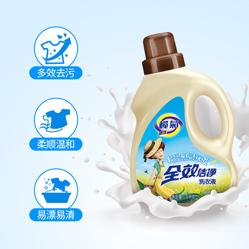 pH中性值配方,温润无化学残留,呵护双手。结合低粘速溶因子,快速分解污渍,快速洁净衣物,省时省水。