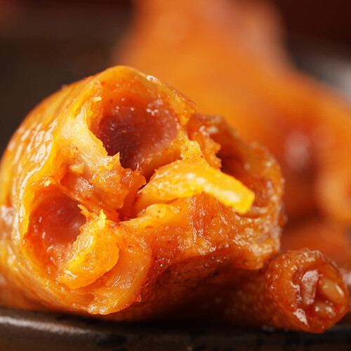甄选肥美鸡爪,肉质鲜美,采用卤制工艺微辣鲜爽,口齿留香,入口细嚼,肉筋分明,鲜香浓郁。