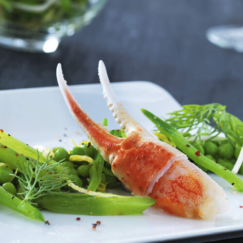格陵兰雪蟹的壳较柔软,容易剥落,蟹肉十分饱满,带着淡淡的海盐味。鲜嫩的蟹肉白里透红,尤其是蟹腿肥美鲜甜。