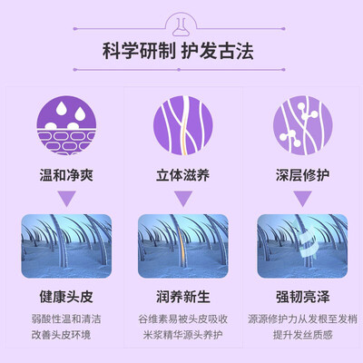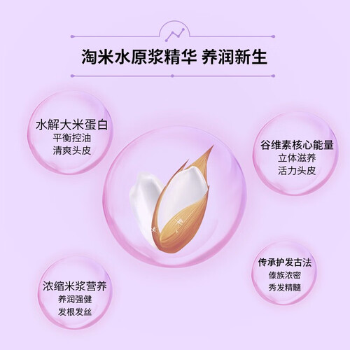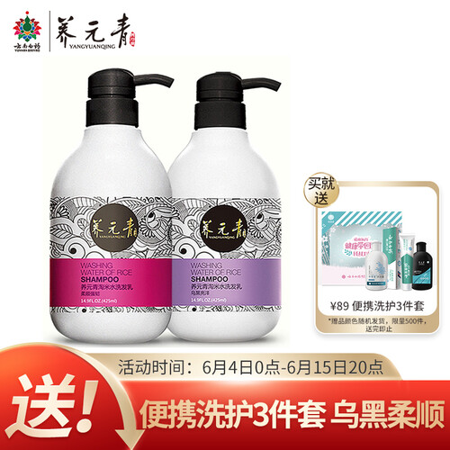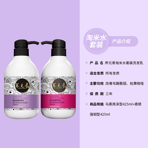 830ml两瓶装规格款,采用淘米水精华的配方,乌黑型与柔顺型组合,可给秀发立体防护,改善枯黄、毛躁等问题。