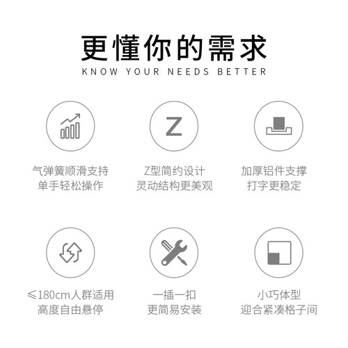 无极升降的电脑桌,拥有较广的升降范围,可悬停至任意高度,满足多种身高人群使用,搭配优质的气弹簧升降,操作顺滑流畅。
